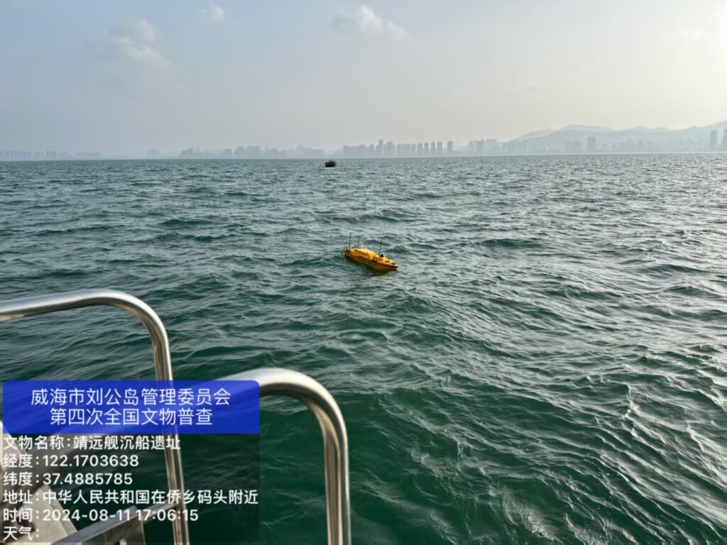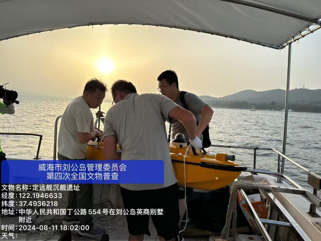 刘公岛海域蕴藏丰富甲午海战水下历史遗产,拥有定远舰等多处重要沉舰遗址,是本次水下普查的核心重点区域。工作中,刘公岛管委联合专业水下考古力量,组建专项普查队伍,配齐声呐探测、水下勘测等专业设备,严格遵循普查技术规范。一方面对已知水下文物点位开展复核建档,精准核查遗址分布、保存现状、水下环境等关键信息;另一方面拓宽排查范围,系统勘探海域未知水下遗存线索,全面采集地理坐标、文物年代、权属用途等核心数据,补齐水下文物基础资料库。